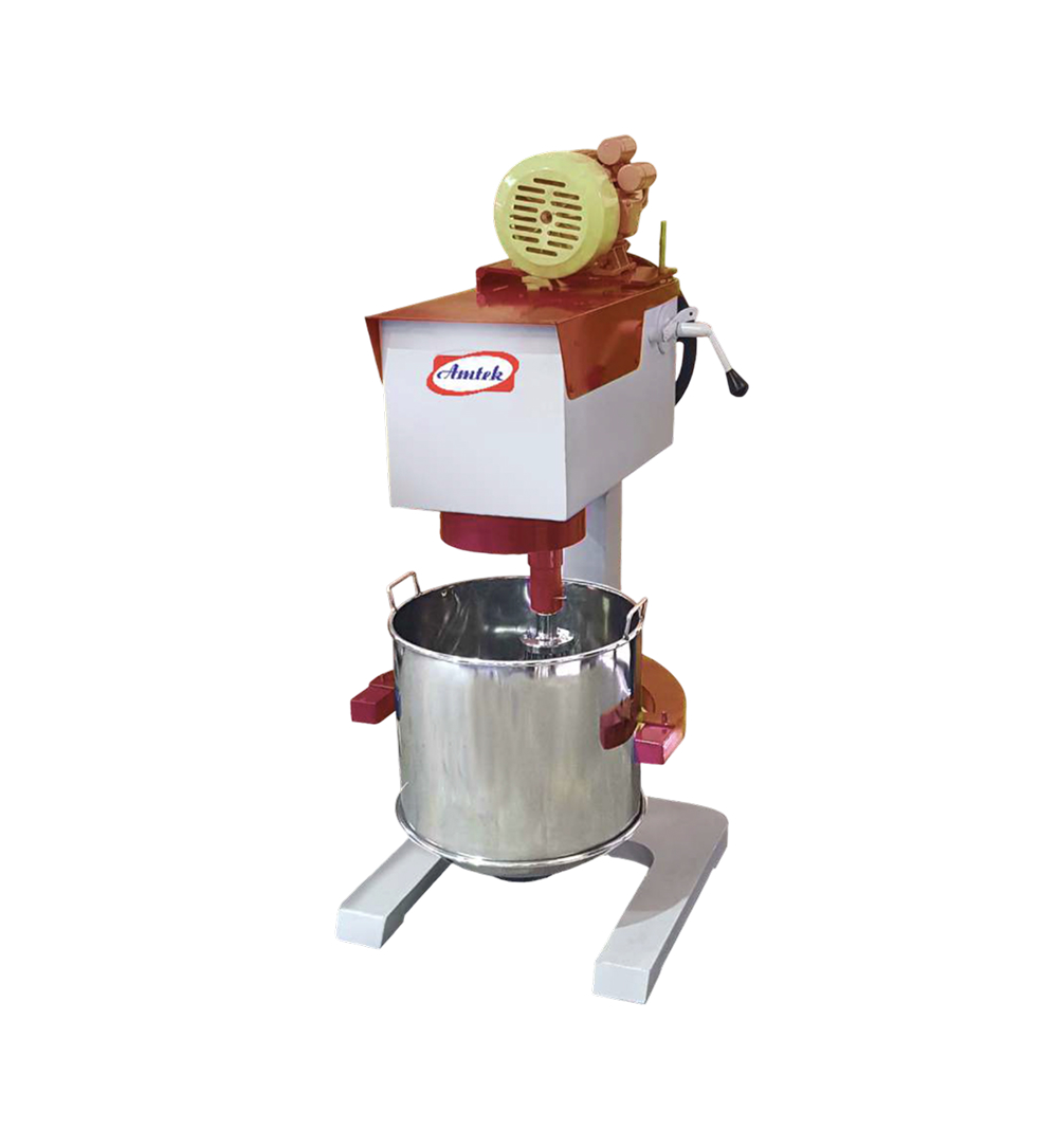 The Amtek Cake Mixer is a specialized vertical mixer designed to deliver perfectly aerated batters for sponge cakes, muffins, and other confectionery items. Its vertical design ensures stability and thorough mixing, resulting in high-quality bakery products.